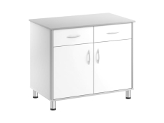 - Стол-тумба имеет 2 выдвижных ящика на роликовых направляющих Метабокс и 2 отделения с дверкой