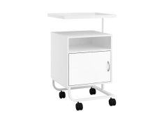 - В основании тумбы и поворотной столешницы каркас из металла с полимерно-порошковым покрытием, цвет — белый