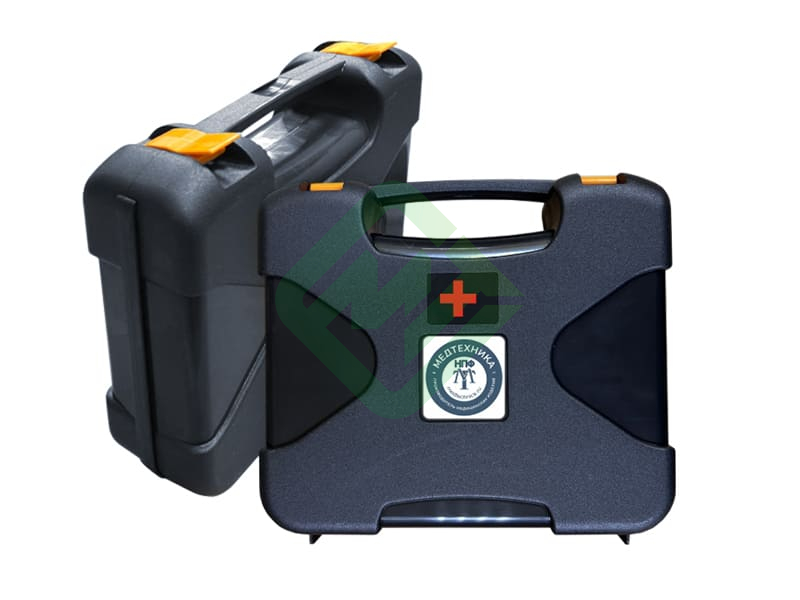 - Аптечка поставляется в пластиковом кейсе, доступном в синем или черном цвете