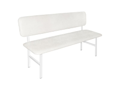- Сиденье и спинка выполнены из ДСП 16 мм с настилом из пенополиуретана 30 мм и облицованы фактурной искусственной кожей цвета слоновая кость