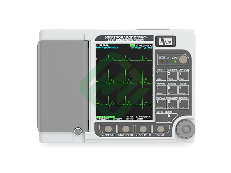- Электрокардиограф 3-6-12 канальный ЭК12Т-01-Р-Д/141 (G0500) со встроенной программой полной интерпретации предназначен для регистрации и измерения биоэлектрических потенциалов сердца с целью проведения электрокардиографических обследований в качестве портативного электрокардиографа