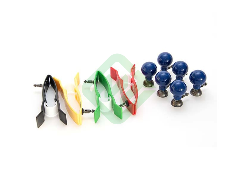 - 4 конечностных электрода различаются цветными скобами-захватами (красные, желтые, зеленые, черные) и имеют покрытие — серебро-хлорид серебра (Ag/AgCl), длина электродов-зажимов — 140 мм