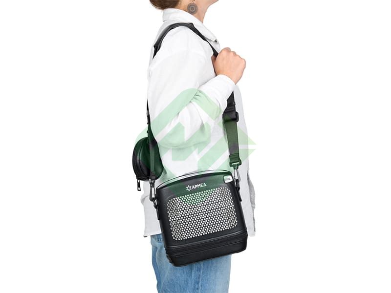 - Так как концентратор имеет минимальные размеры и вес, а также для удобства переноски поставляется в комплекте с сумкой — его легко переносить и пользоваться им там, где необходимо, от медицинских учреждений до домашних условий