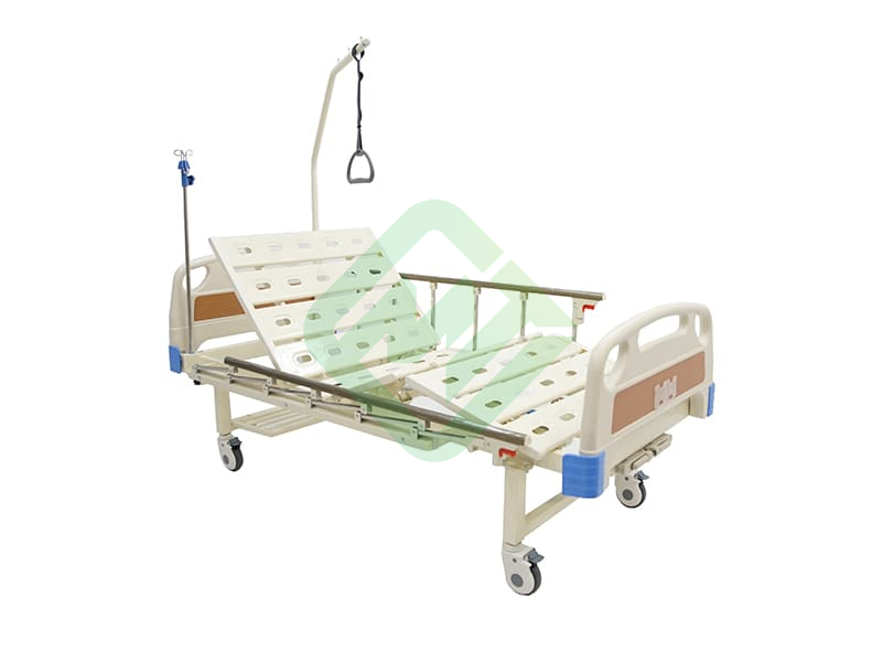 - Выдвижные регуляторы положения ложа расположены в ножной части кровати, что позволяет персоналу легко регулировать положение пациента