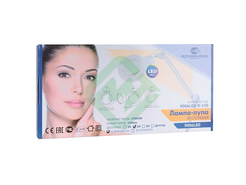 - Лампа-лупа на струбцине Med-mos 9006LED-D-150 — это бестеневая настольная лампа с несъемной стеклянной лупой, может применяться для освещения и одновременно для увеличения рабочей поверхности