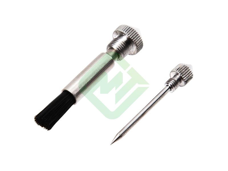 - Компактный легкий молоточек состоит из металлической рукоятки и двухсторонней головки в форме клина, в комплекте игла и кисточка