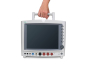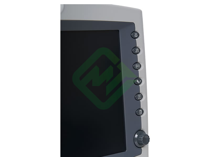 - Большой цветной сенсорный ЖК-монитор TFT с диагональю 12,1 дюйма и разрешением 800x600 пикселей, разделен на 4 области: область каналов, область параметров, строка статуса пациента и строка меню