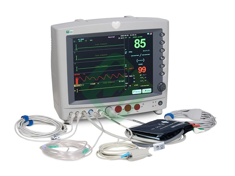 - Измерение параметров: ЭКГ, ЧСС, RESP, НИАД, SpO₂, ЧП, Т°, ЧД