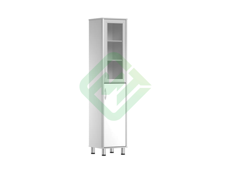 - Шкаф выполнен из ЛДСП 16 мм белого цвета с кромкой 0,45 мм, передние стойки — из анодированного алюминиевого профиля