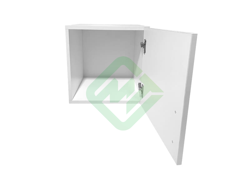 - Изготовлен из ЛДСП 16 мм белого цвета RAL 9010 с кромкой ПВХ 2 и 0,4 мм светло-серого цвета RAL 7047, фасад — ЛДСП с кромкой 2 мм