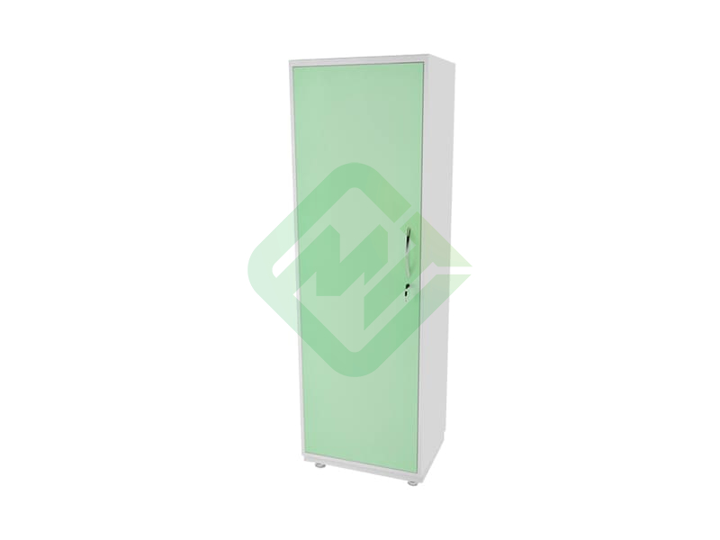 - Шкаф имеет отделение с 4-мя несъемными металлическими полками и распашной дверкой, запирающейся на замок, в комплекте с 2-мя ключами