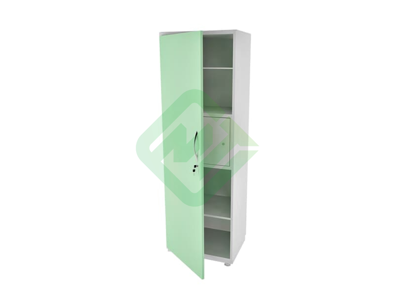 - Шкаф имеет отделение с 4-мя несъемными металлическими полками, сейфом и распашной дверкой с замком, комплектуется 2-мя ключами