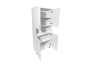 - Шкаф двустворчатый, состоит из 2-х отделений: каждое имеет полку и закрывается 2-мя дверками ЛДСП, между ними открытая ниша
