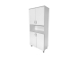 - Выполнен из ЛДСП 16 мм белого цвета RAL 9010 с кромкой ПВХ 2 и 0,4 мм, фасад — ЛДСП с кромкой 2 мм, цвет кромки — светло-серый RAL 7047