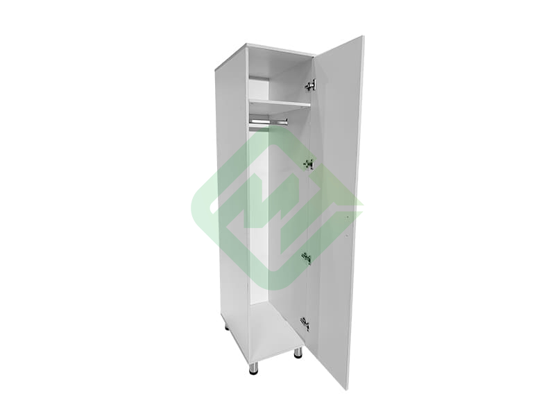 - Изготовлен из ЛДСП 16 мм белого цвета RAL 9010 с кромкой ПВХ 2 и 0,4 мм светло-серого цвета RAL 7047, фасад — ЛДСП с кромкой 2 мм