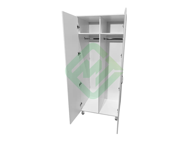 - Конструкция шкафа включает 2 отделения, каждое из которых предусматривает установку 4-х полок или овальную штангу для вешалок 30x15 мм