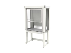 - Шкаф оснащен ударопрочным стеклом с противовесами (можно зафиксировать в любом положении), лампой для освещения рабочей камеры, без вентилятора