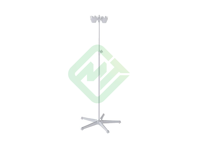 - Основание штатива выполнено из пластика, стойка из металла покрыта порошковой эпоксидно-полиэфирной краской белого цвета, устойчивой к ударам и дезинфекционной обработке