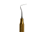 - Рукоятка рифленая из алюминиевого сплава надежно удерживается рукой при стоматологических манипуляциях, цвет — золотисто-желтый