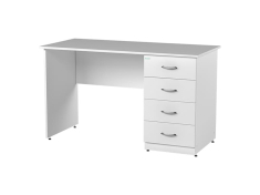 - Стол имеет одну тумбу с 4-мя выдвижными ящиками на роликовых направляющих, размеры тумбы — 368х502х612 мм