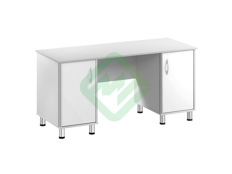 - Стол имеет 2 тумбы из ЛДСП 16 мм с кромкой ПВХ 0,45 мм, фасад с кромкой 2 мм, каждая с отделением с дверкой и полкой