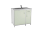 - Мойка врезная с правым крылом — нержавеющая сталь, комплектуется смесителем, сифоном и гофрированным сливом