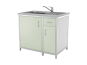 - Мойка врезная с правым крылом — нержавеющая сталь, комплектуется смесителем, сифоном и гофрированным сливом