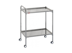 - Столик имеет 2 полки из нержавеющей стали, размер каждой — 665x420 мм