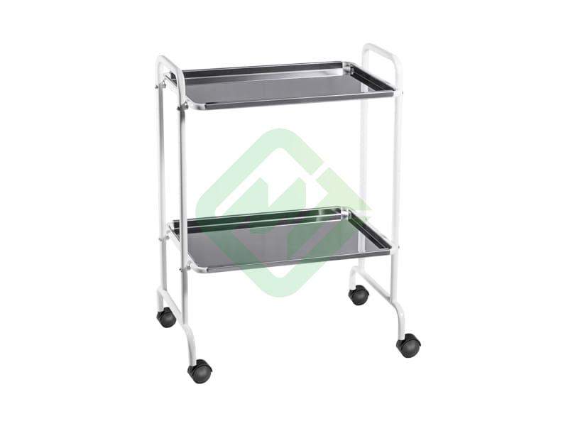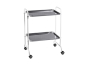- Столик имеет 2 съемные полки из нержавеющей стали размером 580x420 мм с бортиками 21 мм по всему периметру