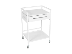 - Столики имеет полку (столешницу), ящик и полку (без бортиков) под ящиком из окрашенного металла