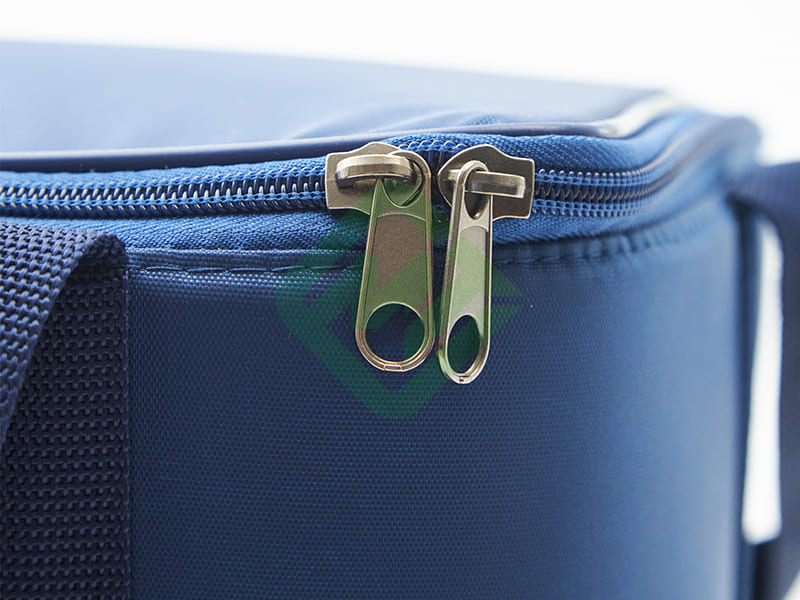 - Сумка-холодильник имеет 9 больших и 8 малых охлаждающих элемента в специальных внутренних карманах для поддержания температурного режима внутри сумки, закрывается с помощью застежки-молнии