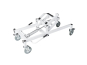 - Тележка имеет складные алюминиевые боковые ограждения, гнездо под штатив и бамперы по краям каркаса
