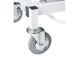 - В основании 4 самоориентируюшихся колеса с ободом из термопластичной серой резины, 2 колеса снабжены прижимным тормозом