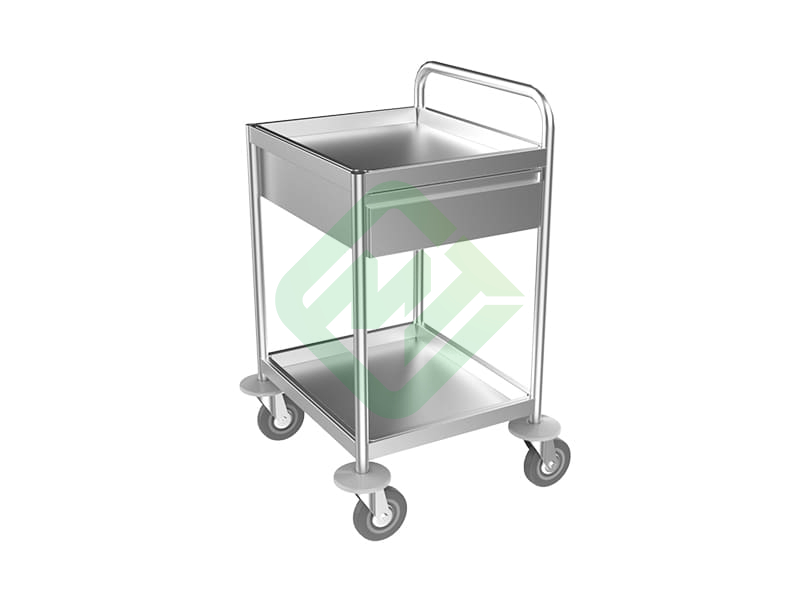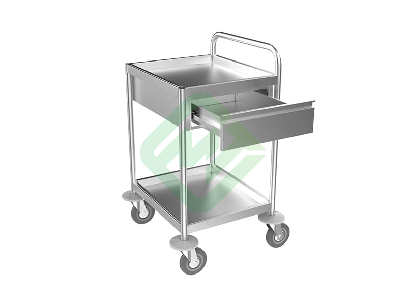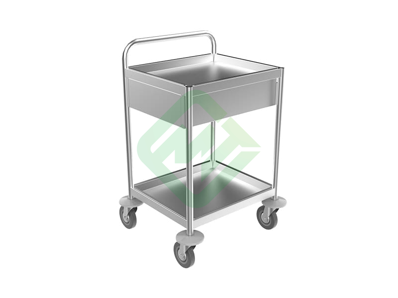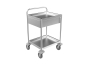- 2 съемные полки из нержавеющей стали имеют бортики высотой 40 мм по краям для исключения выпадения предметов во время передвижения