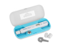 - Тонометр упакован в пластиковый футляр со встроенным тест-устройством (задатчик давления) для проверки исправности прибора, размеры футляра — 200x80x30 мм