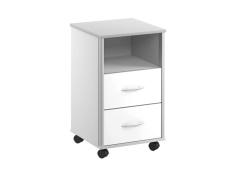 - Тумба устанавливается на 4 самоориентирующихся колеса из серой резины с полипропиленовым ободом высотой 65 мм, 2 колеса с тормозом