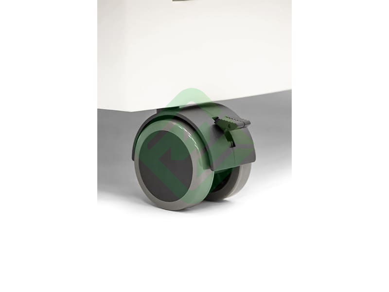 - Тумба устанавливается на 4 пластиковых колеса, 2 с индивидуальным тормозом для фиксации в неподвижном положении на напольном покрытии