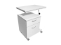 - В основании тумбы и поворотной столешницы каркас из стали с полимерно-порошковым покрытием, цвет — белый RAL 9003
