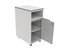 - Тумба устанавливается на 4 пластиковых колеса, 2 передних с тормозом